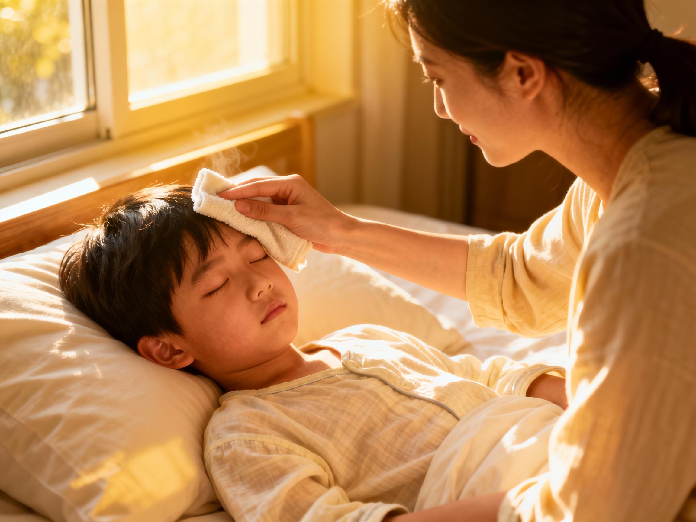 After going through this, my mindset has become much steadier. Now when my child has a fever, I feel confident. I place him in a well-ventilated, comfortable room, dress him in a thin, sweat-absorbent cotton undershirt, and cover him with a light blanket. There is always a cup of warm water at the bedside, and I gently encourage him from time to time, “Sweetie, let’s take a sip of water.” I prepare plain, soft foods; if he won’t eat, I don’t force it. Sometimes I use a small towel slightly cooler than warm water to wipe his forehead, neck, and lower legs — if he finds it comfortable and doesn’t resist, I wipe; if he squirms and is unhappy, I don’t force it and simply hold him.