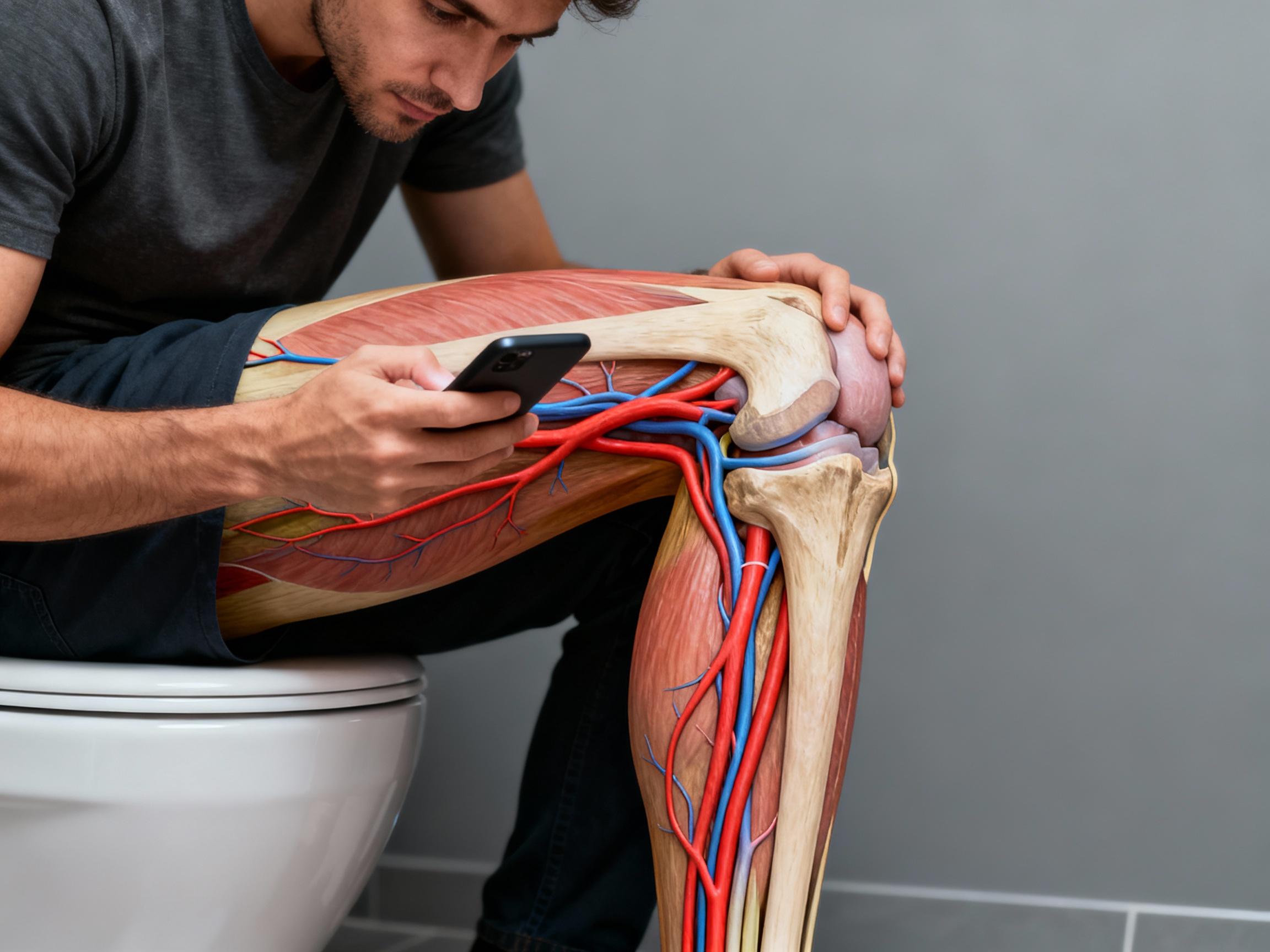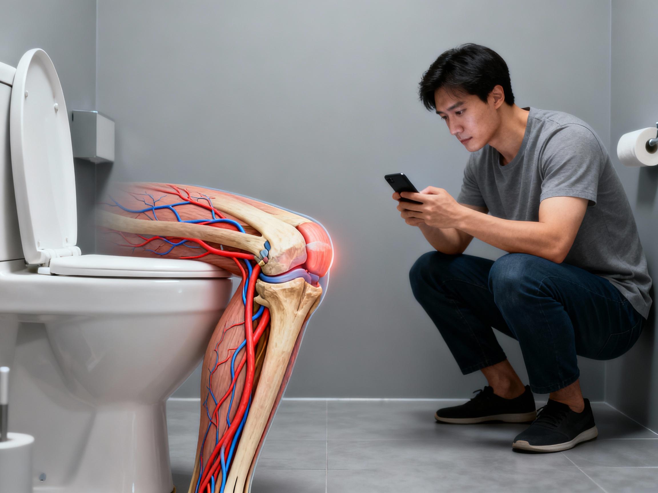 Lower limb vessels face similar risks. Huang Jianhua, chief physician of Vascular Surgery at Xiangya Hospital, Central South University, explained that venous return from the lower limbs relies on muscle contraction to assist. When squatting on the toilet looking at a phone for more than 15 minutes, the muscles remain inactive for an extended period, contractions slow accordingly, causing venous blood flow velocity to decrease, which can easily lead to leg swelling and numbness.