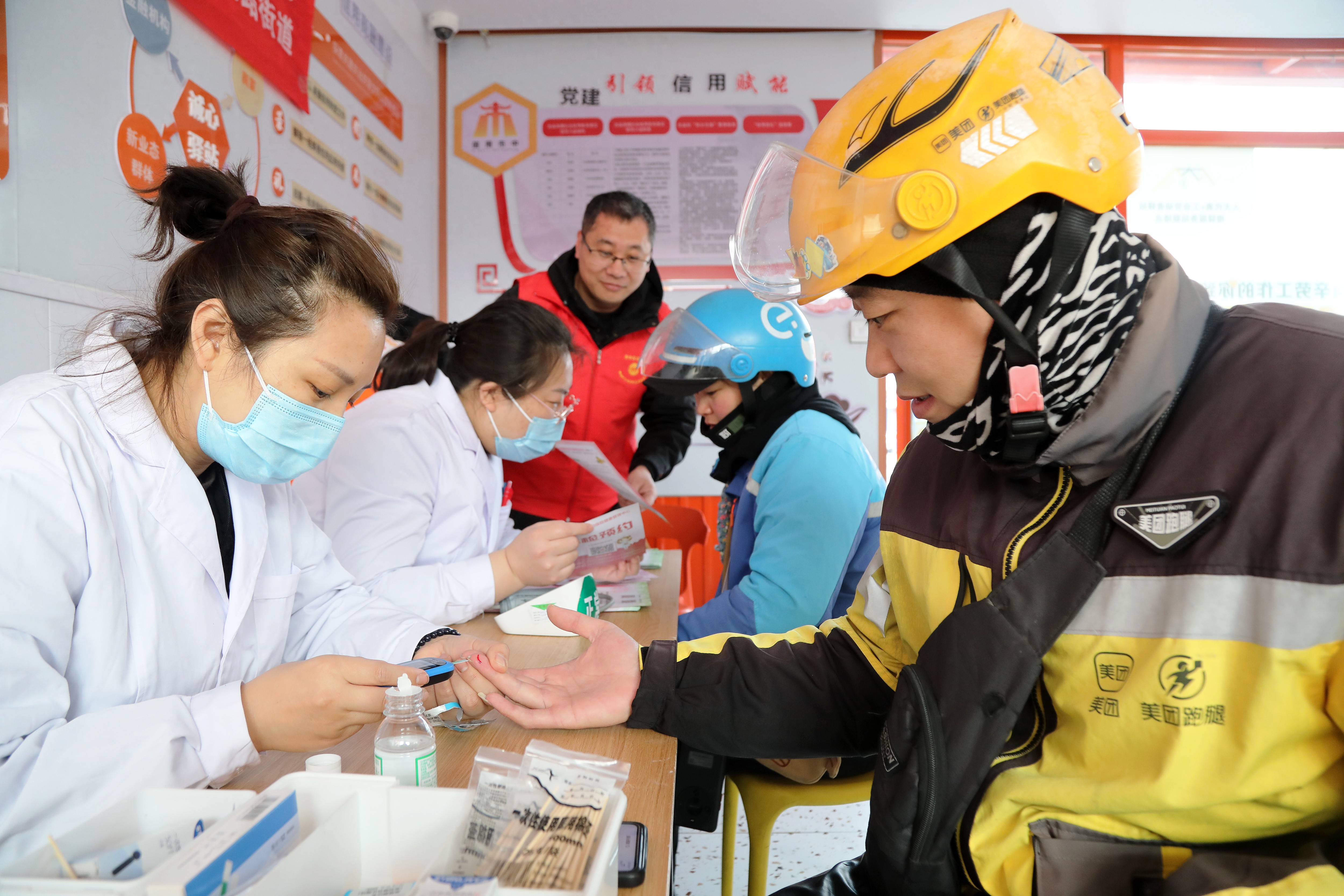 March 5, 2025, volunteers at a trade union station in Shizhong District, Zaozhuang City, Shandong Province, measured the blood sugar of food delivery drivers for free. Xinhua News Agency