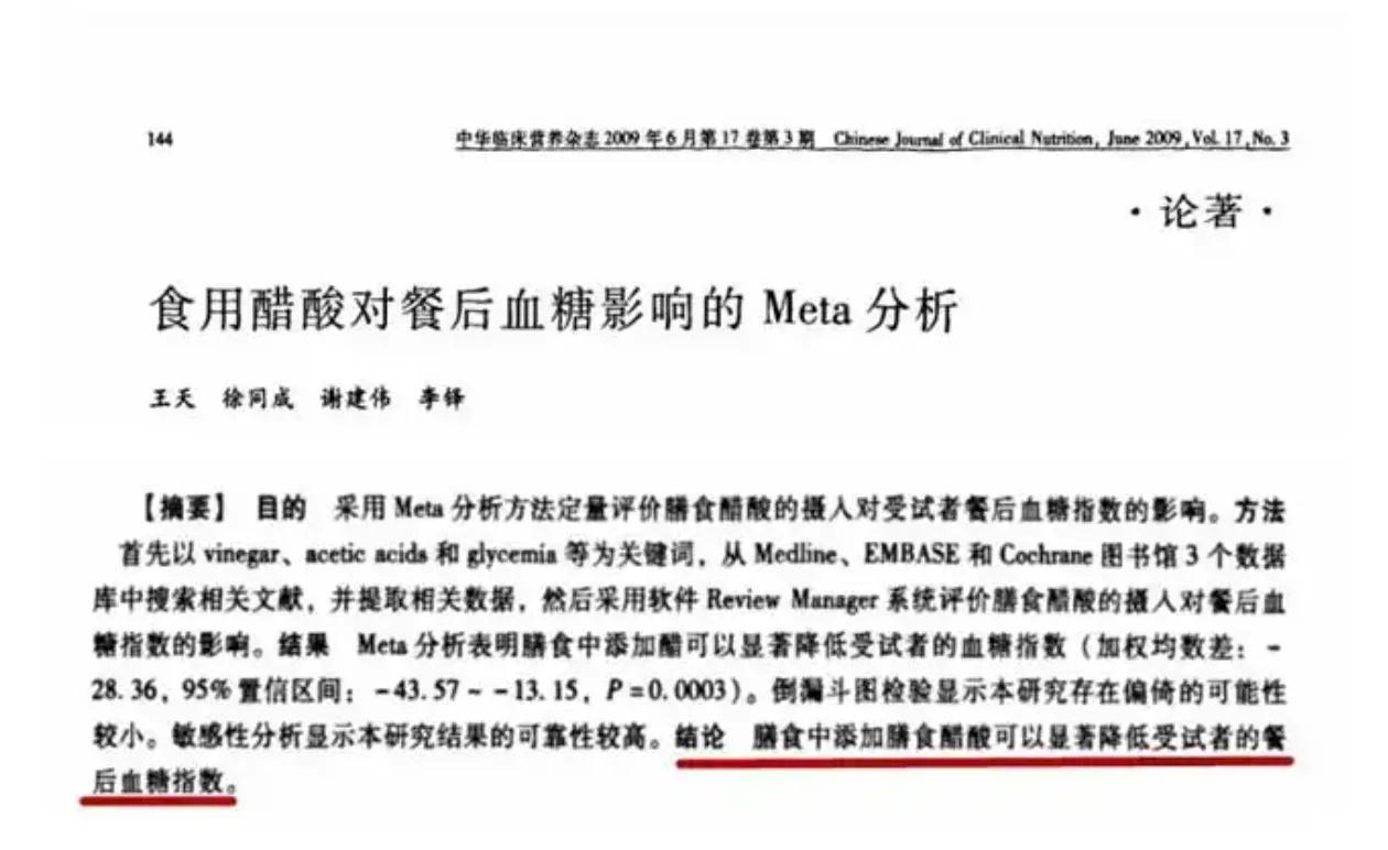The "Chinese Journal of Clinical Nutrition" also reported on related findings, indicating that adding vinegar to the diet can lower the post-meal blood glucose index of subjects.