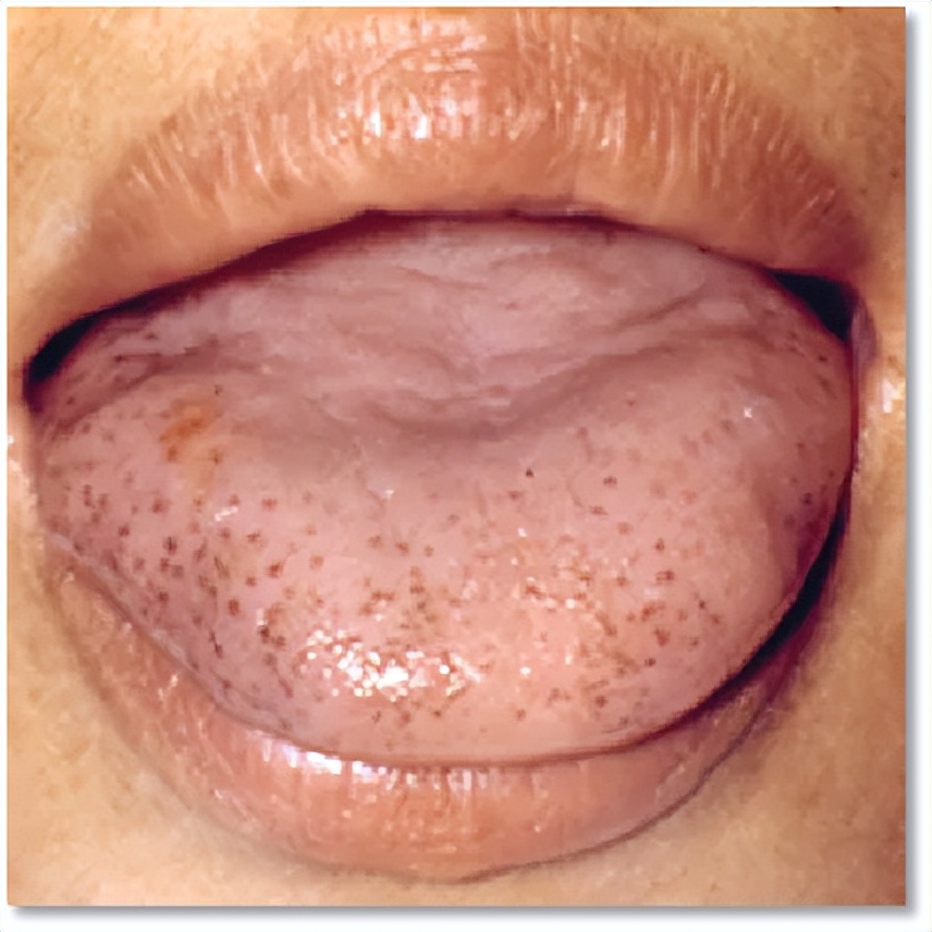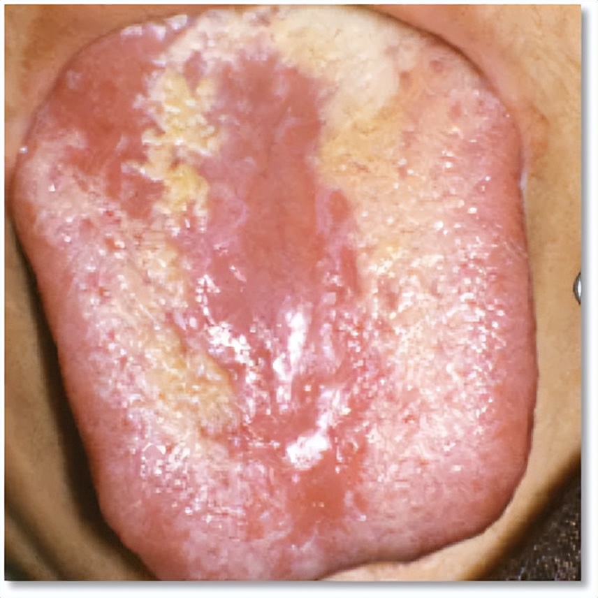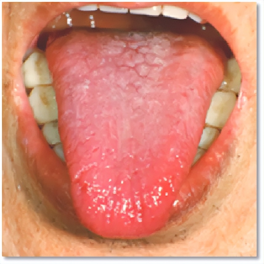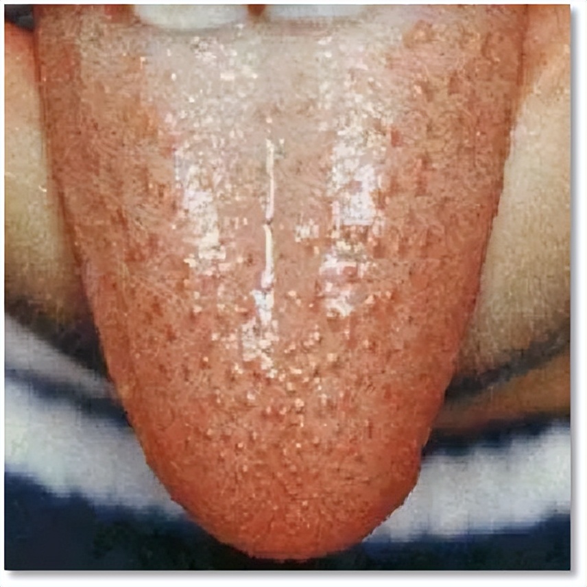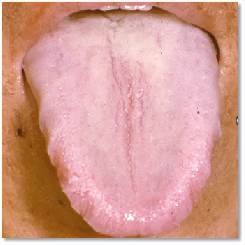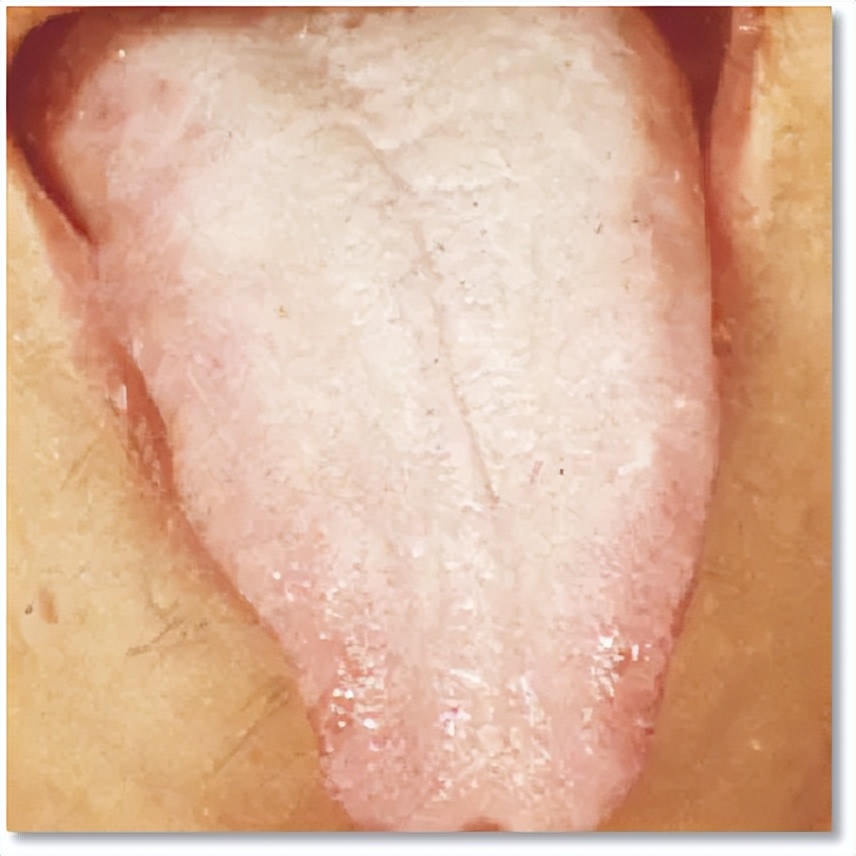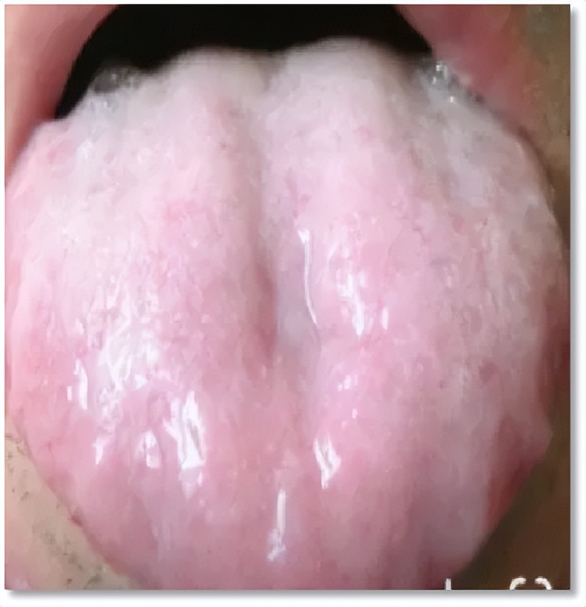 Slippery coating: Excessive moisture, the tongue appears as if it's about to drip, indicative of phlegm retention and dampness