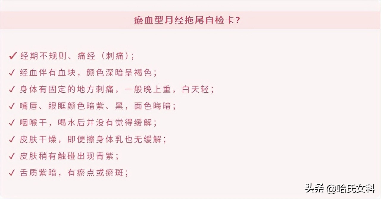 If you mistakenly treat prolonged spotting of blood stasis type as a deficiency syndrome and only focus on tonification, it will only worsen the stagnation and produce opposite effects. You can determine whether you have a blood stasis constitution through a self-assessment checklist for body constitution and tongue examination.