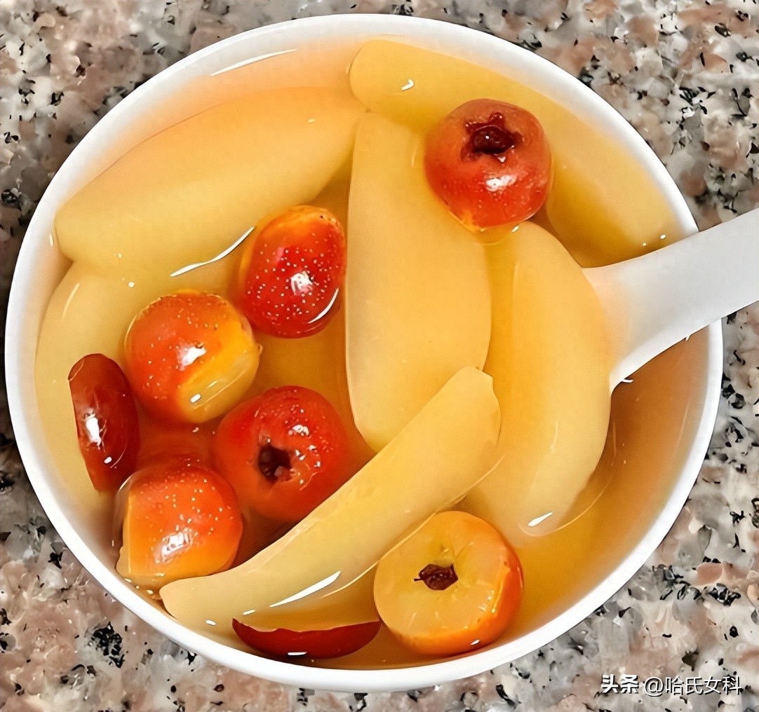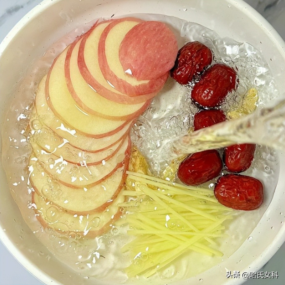 Preparation: Cut apples into chunks, remove the pits from red dates, and add a few slices of ginger. Simmer for half an hour. Brown sugar can be added for flavoring to enhance the uterus-warming effect.