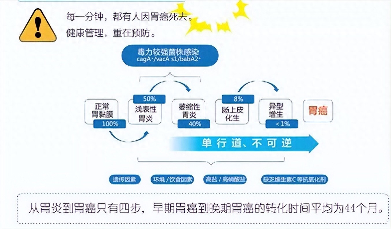The progression from gastritis to gastric cancer is not instantaneous, but rather a gradual, multi-step process. Among these steps, "intestinal metaplasia" and "dysplasia" are considered the two closest "stepping stones" to gastric cancer, with dysplasia especially regarded as the final warning signal of "precancerous lesions."