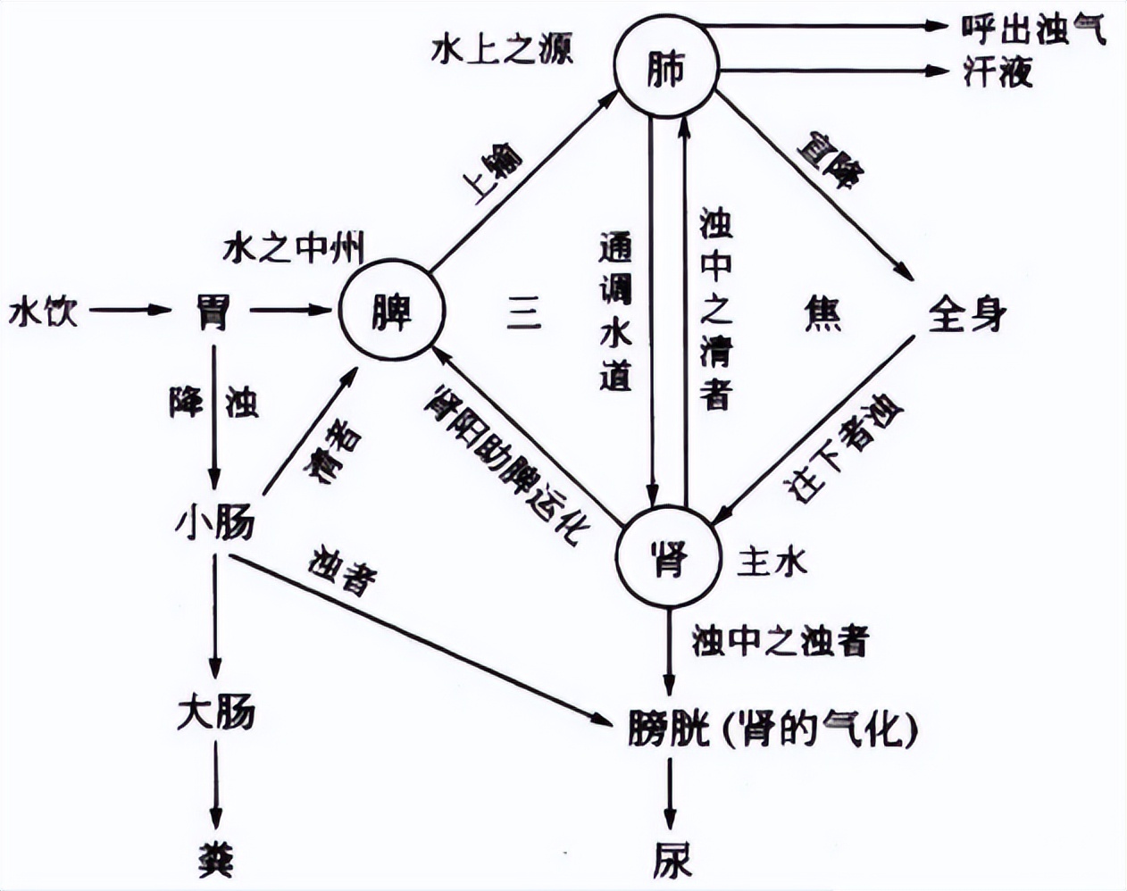 The lungs govern dispersion and descent, with the function of distributing body fluids and regulating water passages; the spleen governs the transportation and transformation of dampness, serving as a key organ for absorbing and transmitting fluids.