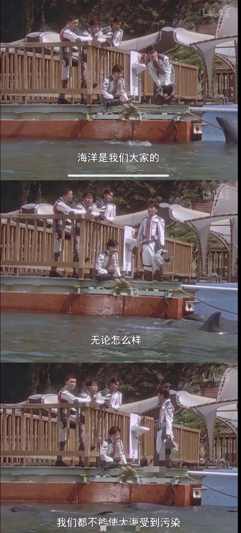 In Episode 12 of "Ultraman Tiga," a member of the Victory Team says by the sea: "The ocean belongs to all of us. No matter what, we must not let the sea be polluted."